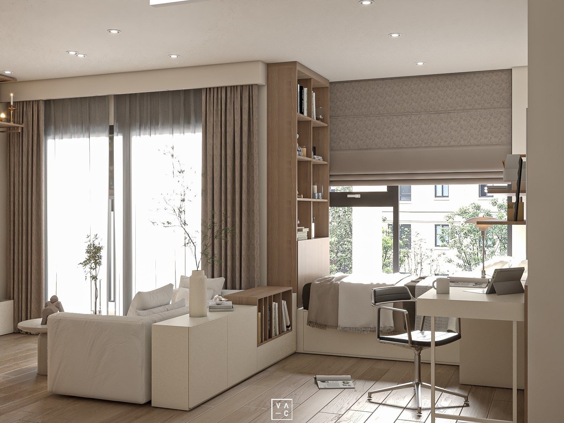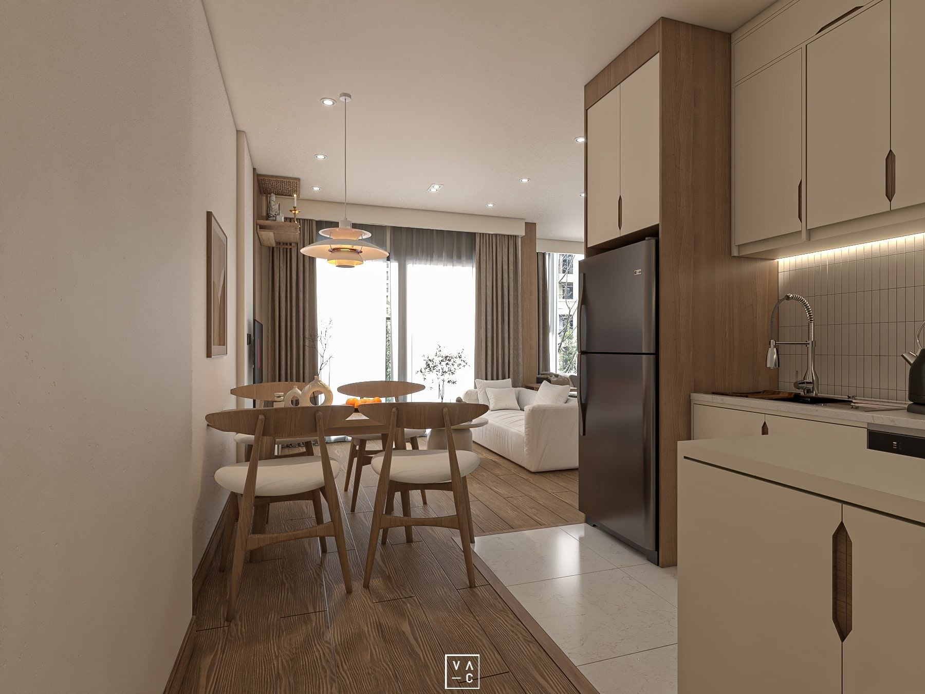 Sở hữu diện tích 68m2, căn hộ Vinhomes đã được chúng tôi biến hóa thành một không gian sống hiện đại, tiện nghi và đầy đủ ánh sáng. Thiết kế theo phong cách tối giản không chỉ giúp căn hộ trở nên rộng rãi hơn mà còn tạo nên một không gian sống tinh tế và đẳng cấp.