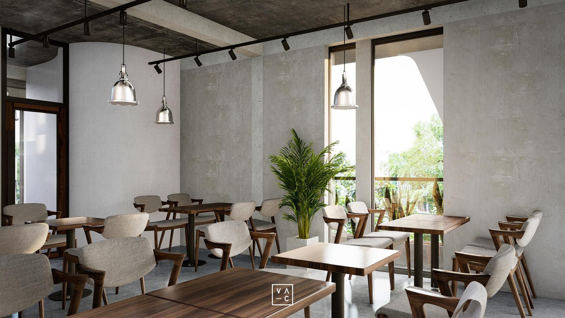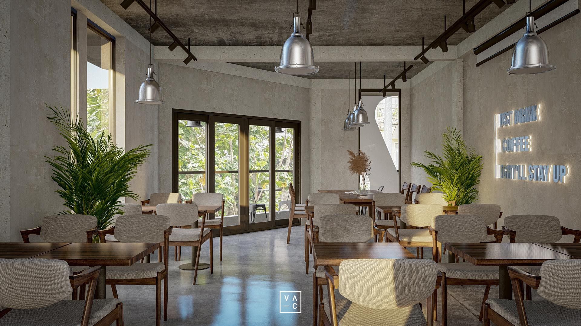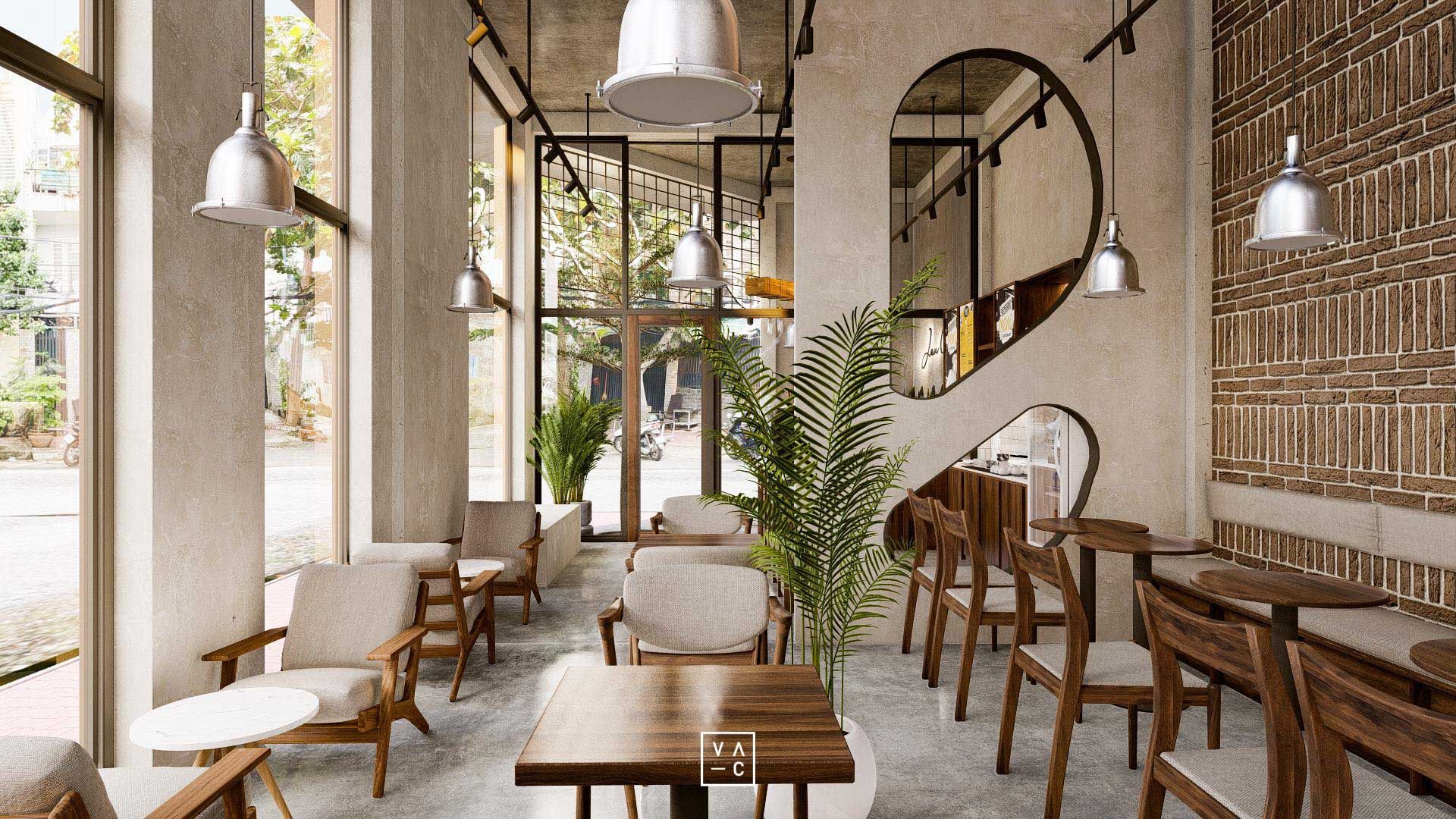 Jan cafe nổi bật với phong cách công nghiệp hiện đại kết hợp hài hòa với những mảng xanh tươi mát.