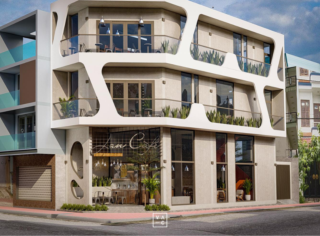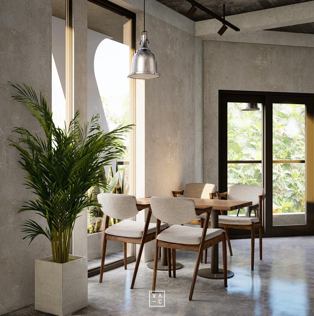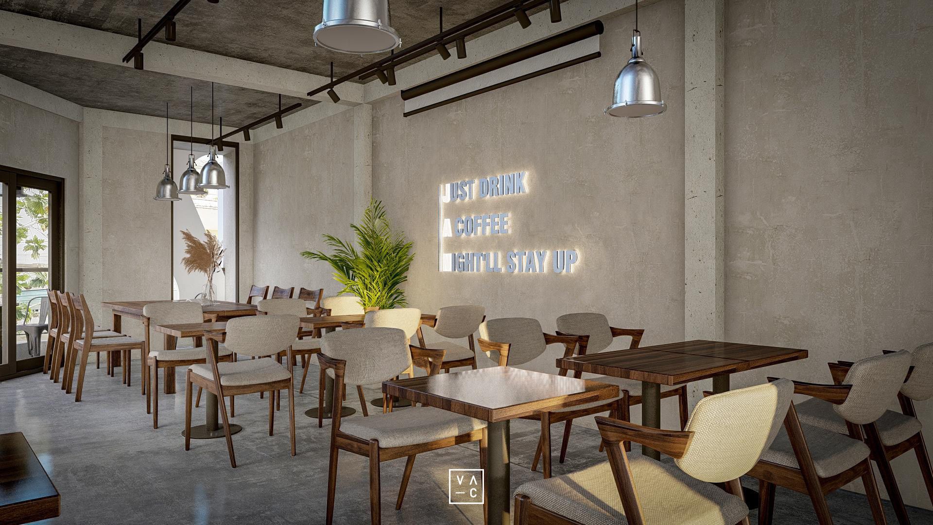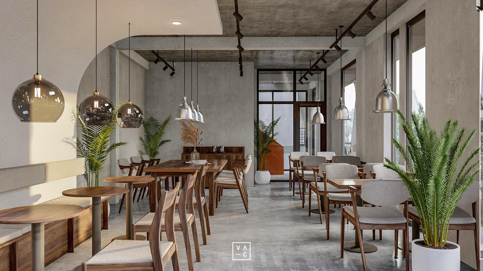 Jan cafe nổi bật với phong cách công nghiệp hiện đại kết hợp hài hòa với những mảng xanh tươi mát.
